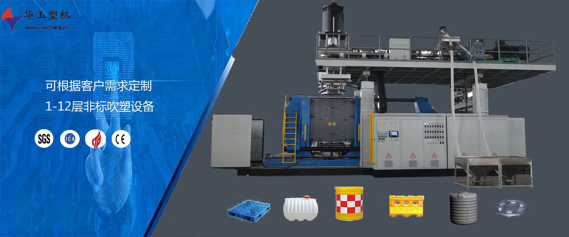 濰坊市華玉塑料機械有限公司創(chuàng)辦于貳零零貳年,是超大型全自動中空吹塑設備專業(yè)生產廠家。公司融合國內外先進技術和理念,專業(yè)設計、生產、銷售一層到十層的大型全自動中空成型機組。我公司生產的各型號吹塑機可生產50升到30,000升的各類塑料水桶,噸桶、雙環(huán)桶、水馬、路錐、隔離墻托盤、桌板、浮筒、皮劃艇、工具箱包等中空制品。優(yōu)良的品質、穩(wěn)定的性能、優(yōu)越的性價比使公司產品不僅暢銷國內市場,并出口到亞洲、東南亞、中東、歐洲、北美、南美、非洲等80多個國家和地區,深受客戶的好評...